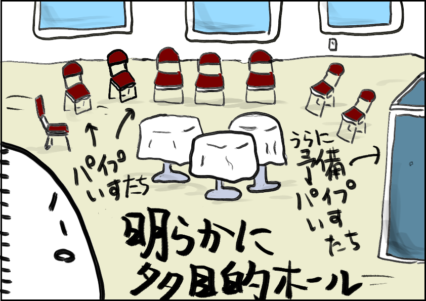 と答えたホテルマンと共に探し行きついたのが、この多目的ホールでした。