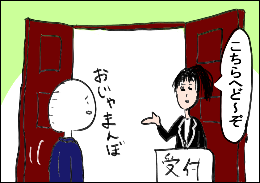 描きながら思い出しましたが、ホテルの入口でホテルマンに